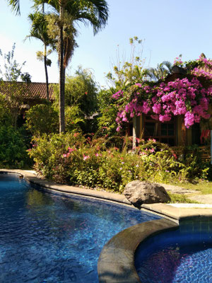 We only have one colony of bees in the back garden of Saraswati Holiday House. But precisely because of the lack of strong competition and good nectar flow, we were able to extract more honey than ever before in October 2024. Almost 1 kg. But we also left plenty of honey in the hive, which should last through the coming rainy season. We also observe other species of wild bees in our garden. They also need nectar and pollen, so it is just good for them that there is only one colony of cerana honey bees at our place.